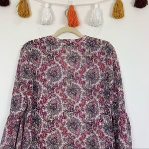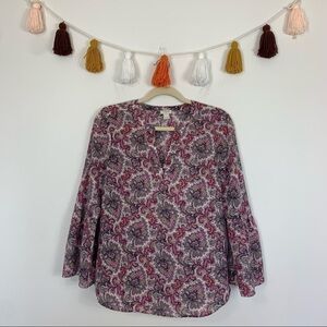J. Crew Pink Paisley Bell Sleeve Blouse Size Small