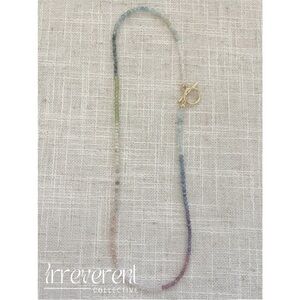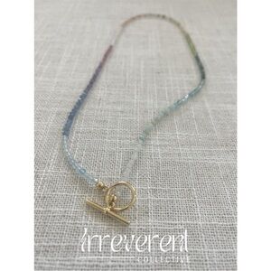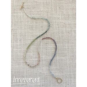 Crafted with intention, the Chroma Alchemy Necklace by Irreverent Designs features an array of natural stones, each chosen for their unique properties and energies. With 13 different gemstones, this piece is designed to promote balance, positivity, and well-being. Finished with a gold-plated toggle clasp, it’s perfect for layering or wearing on its own as a statement of mindful elegance.