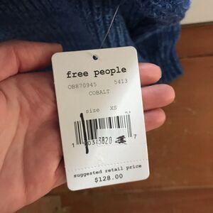 NWT free people cobalt blue eleven ribbed knit side slit turtleneck sweater. Excellent condition.