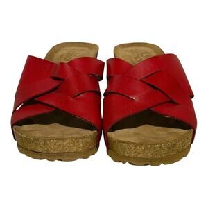 Yokono Red Genuine Leather Crisscross Slide Sandals Women's Size 6.5 Spain