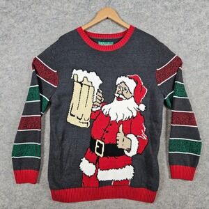 Ugly Christmas Sweater Men's Size XL Santa Beer Thumbs Up Graphic Knit Warm PULL