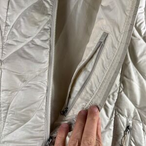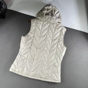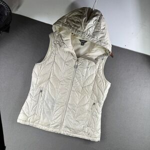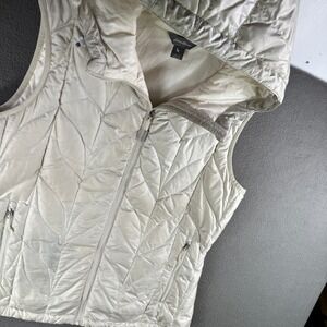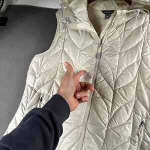 Eddie Bauer Down Puffer Vest Women L Hooded Insulated Down Blend Ivory Winter