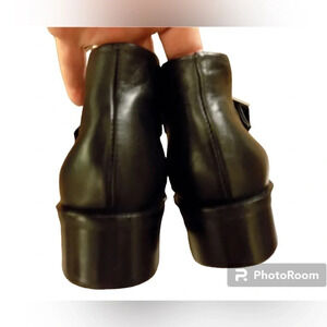 NWOT ETIENNE AIGNER Biker low 1.25" Heels Black Leather Ankle Boots Buckle Strap sz 7