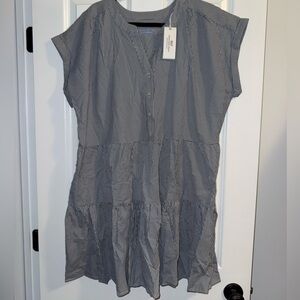 Stylish pink top with graphic design. Paired with a sleek gray skirt. Ideal for casual outings.