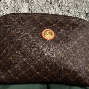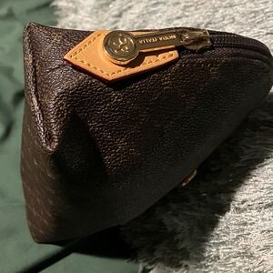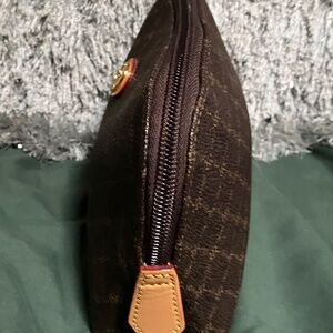 RIONI Brown Signature Small Cosmetic Pouch 5”X8”. Pre-owned but never used. Like-new condition. See photos for details and measurements. You will get exactly as pictured!