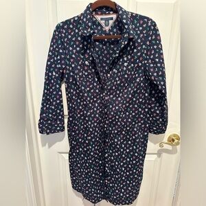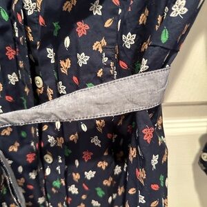 Tommy Hilfiger belted shirt dress with leaf print. Navy blue. Size Medium.