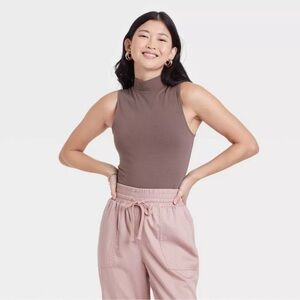 A New Day Bodysuit Mock Neck Sleeveless Thong Cut Brown One-piece Medium NEW