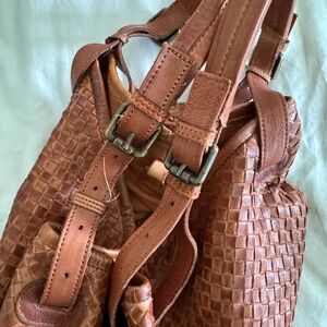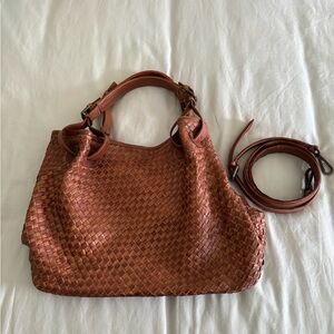 Genuine leather made in Italy. Measures 15”x12”. Shoulder and cross body strap. Large inside zippered pocket