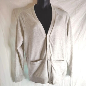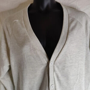 Cotton grey cream blend sweatshirt with button front and branded buttons. Size large. athletic fit. I have another one in the same size in my closet that zips up.