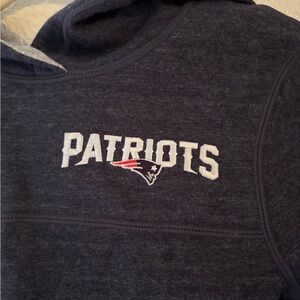 Navy hoodie with Patriots logo. Soft and reversible design.