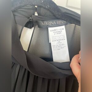 Marina Rinaldi dress, Max Mara plus size dress, black chiffon maxi dress, sheer overlay gown, plus size formal dress, elegant evening dress size 24, Marina Rinaldi Uscio, gothic chic dress, timeless Italian designer plus size fashion, long sleeve black gown