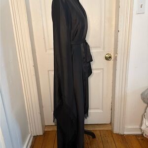 Luxurious black satin robe with lace trim. Perfect for lounging.