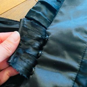Gorgeous black pleated silk mini dress with halter now detail at neckline. Classic fitted silhouette made with stretch silk fabric to show off curves and flatter your figure . Made in early 2000s. Y2K. Perfect for wedding or any event . Elegant gold zipper back. Pristine condition but size tag is missing . Fits like a US size 4/6. All measurements taken flat. Measures armpit to hem 34”, armpit to armpit 17”, waist 13”.’