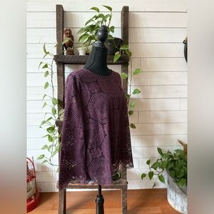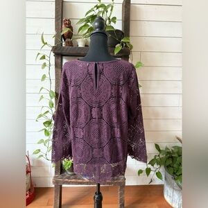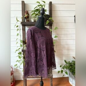 LOFT Deep Purple Lace Scallop Bottom Blouse