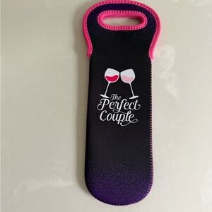 Stylish wine tote featuring a playful design with wine glasses and 'The Perfect Couple' text. Perfect for carrying your favorite bottle.
