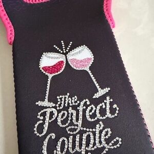 Wine Tote Koozie Black Purple Pink with Rhinestone Design