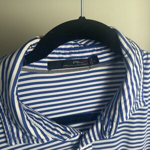 RLX Ralph Lauren Blue Stripped Nashville Hillwood Country Club Golf Polo Size L