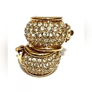 Vintage Crystal hoop Earrings rhinestone Designer haute couture clip on gold tone dangle