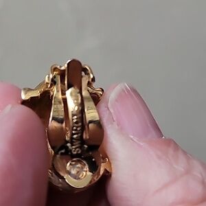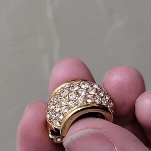 Vintage signed pave small Designer Couture clip on gold tone Statement Rare!