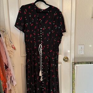 Black Cherry Print Maxi Dress