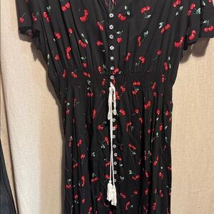 • Black base with delicate red cherry pattern