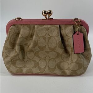 Coach Pink and Tan Crossbody Bag with Gold Chain