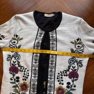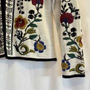 This Simply Nature Hanna sweater is a mix of acrylic and alpaca. It’s embellished with handcrafted embroidery. Remove the tags and it’s reversible!