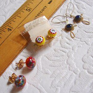 Vtg Murano/Venetian Glass Pierced EARRINGS x3, Stud & Dangle Cross, Evil Eye G35