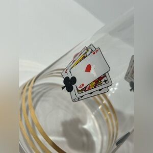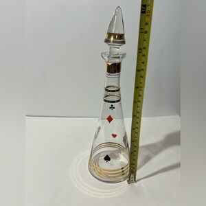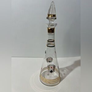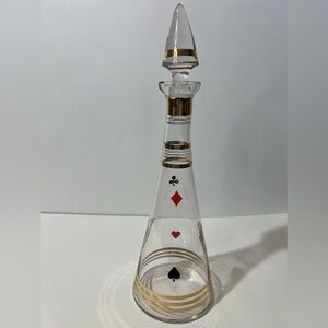 VTG Glass Carafe W/ Stopper Decanter Poker Cards Gold Accents MCM