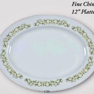 Bell Flower 2999 Fine China Japan Oval Platter, Green Scrolls, Gold Trim