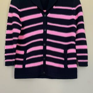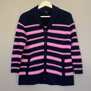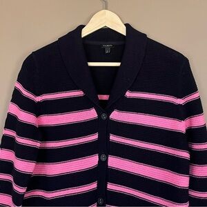 {Talbots} Shawl Collar Striped Cardigan Sweater in Pink & Navy - Womens Large