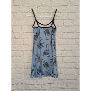 Y2K Dolls Kill Baby Blue Butterfly Floral Mesh Dress Size XS Ringer black trim