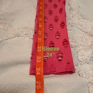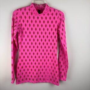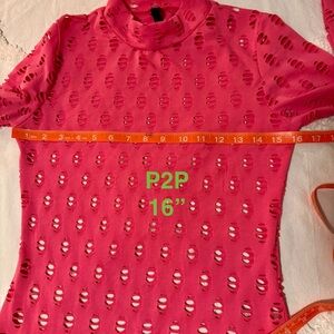 POSH by V Perforated High-Neck Pink Long Sleeve Stretch-jersey Top