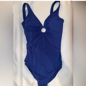 Tommy Bahama Swimsuit Mare Navy Royal One Piece grommet ring 12 tummy control
