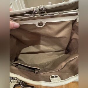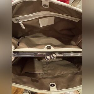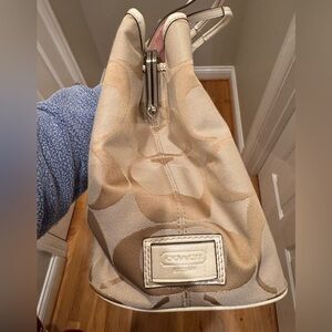 Coach - Signature Stripe Kisslock Carryall - Cream/Tan - EUC - 2011 Very Clean
