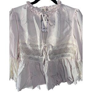 free people, vintage style, white lace top, boho chic, romantic blouse, feminine jacket, size XS, timeless piece