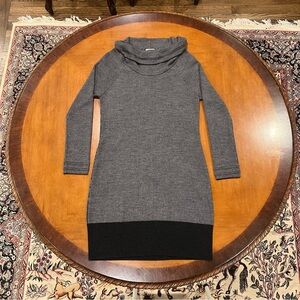 Toad & Co Merino Wool Uptown Sweater Dress Gray/Black Large Cowl Long-Sleeve