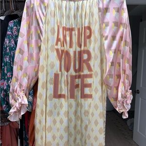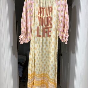 Me369 Amelia Puff Sleeve Maxi Dress in the Vacation print