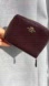 Authentic Coach compact zip-around wallet crafted in rich burgundy pebbled leather with gold-tone hardware. Features the iconic Coach horse and carriage logo on the front. Interior includes card slots, a bill compartment, and a zip coin pocket, all lined with smooth black leather. Elegant and functional — perfect for everyday use or as a gift. Two credit card slots
