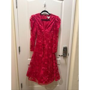 HELSI Parker Embroidered Midi Dress In Fuchsia-red Cocktail Party Size XS NWOT