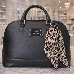 Sleek and stylish black satchel. Perfect for everyday use. Features sturdy handles and elegant design. New with tags and unused put missing main tag because it fell off and I’m unable to find it.