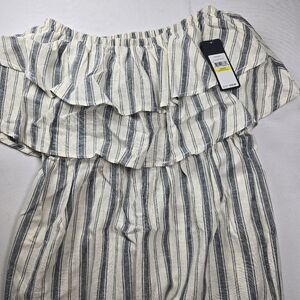 Beautiful, brand new with tags, Rachel Roy Jacinta Striped Off-Shoulder Linen & Cotton Dress dress with blue and white stripes. Perfect for casual outings. Measurements are approximate and shown in pics