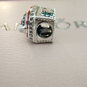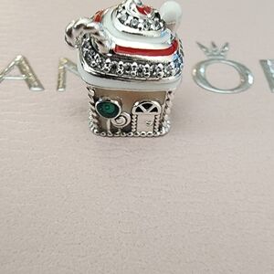 Celebrate what makes the holidays sweet with this Festive Gingerbread House Charm. This cute sterling silver house-shaped charm is decorated with realistic caramel brown, red and green enamel and features delicious details including candies and lollipops on the walls, a door with a tiny heart-shaped handle and a swirled icing roof complete with a chimney and rows of sparkling pavé. A Christmas tree detail on one wall adds the final festive touch. Wear a reminder of cozy holiday traditions on your jewelry and celebrate the happy memories of the season.