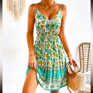New Bohemian Floral Vacation Spaghetti Strap Sleeveless A Line Cami Dress Sz 6