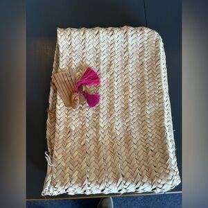 Chic gladiator style tan leather sandals with tassels. New with storage bag/ clutch.