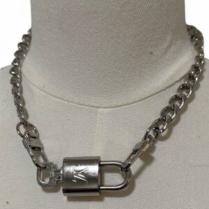 #319 Louis Vuitton Silver Padlock with Key and added Necklace Choker