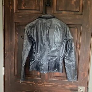 Elevate your style with this sleek leather jacket. Perfect for any occasion, it offers a timeless look and comfortable fit.