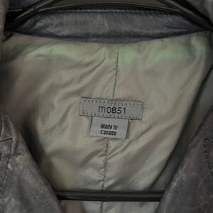 Genuine leather jacket made in Canada. Some natural fading as shown in photos.