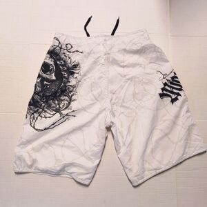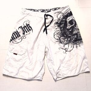 Miami Ink Grunge White Skull Graphic Shorts Size 38
