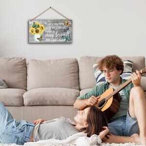 Home warming quotes: the rustic bedroom signs are printed with inspiring quotes, read "every day is new beginning take a deep breath, and start again", which can encourage when you are upset and will let your home decor be filled with love and warmth.